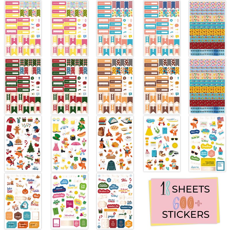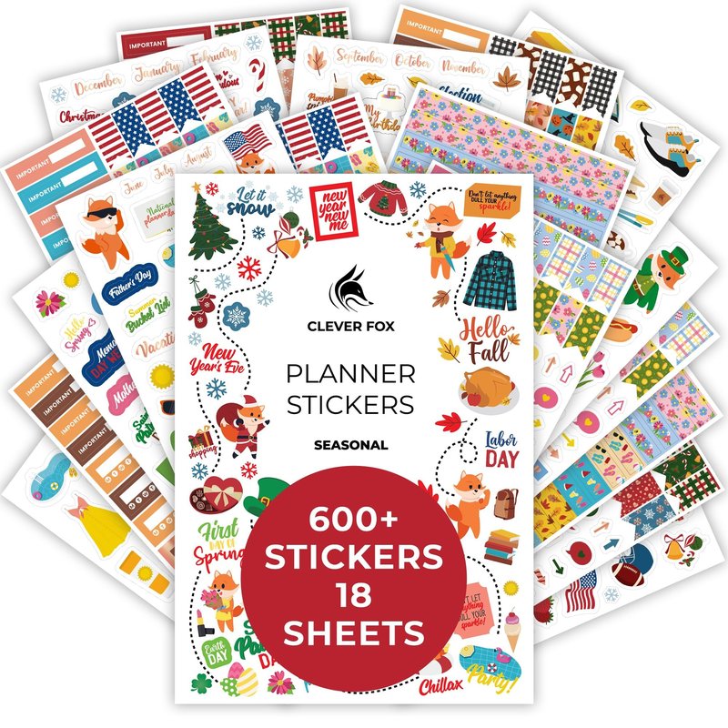 - 600+ UNIQUE SEASONAL & HOLIDAY STICKERS FOR PLANNER: Clever Fox Seasonal Sticker Pack includes 16 sheets with colorful seasonal stickers and 2 sheets with seasonal washi tape designs. With more than 600 monthly planner stickers, you will be able to transform your planner into a true work of art.