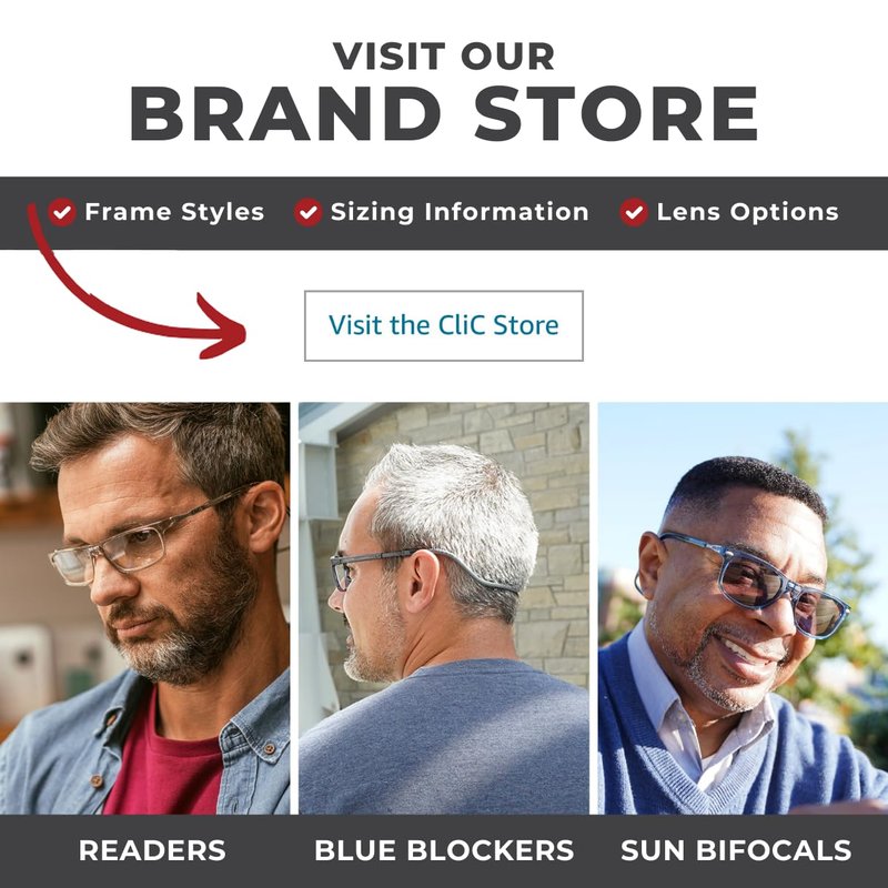 - ADJUSTABLE TEMPLES. The adjustable temple feature found on all CliC frames allow for easy sizing in the moment. Simply pull to adjust the length of your glasses for a perfect fit every time you put them on.