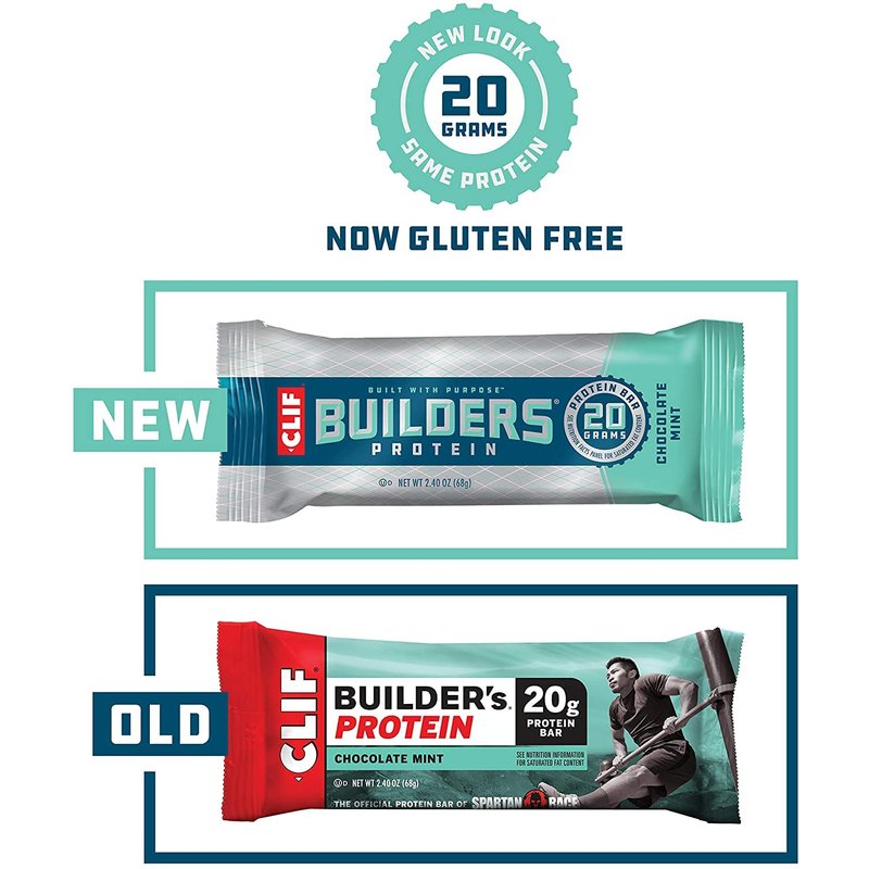 - NEW LOOK. SAME 20g PROTEIN: CLIF Builders protein bars have a bold new look. If the amazing new designs aren’t in your delivery, they will be soon.