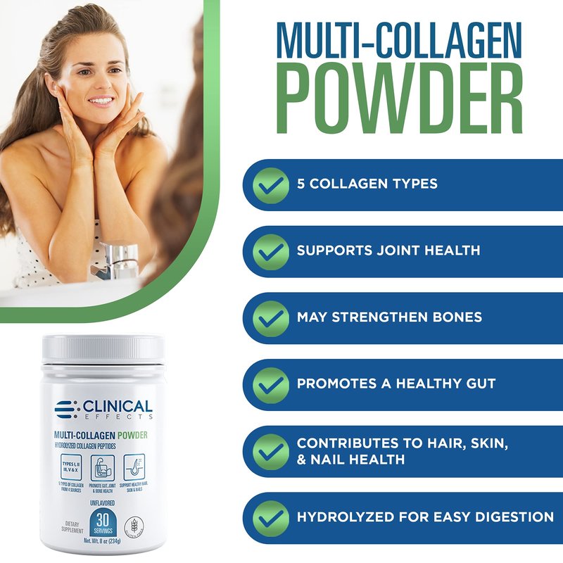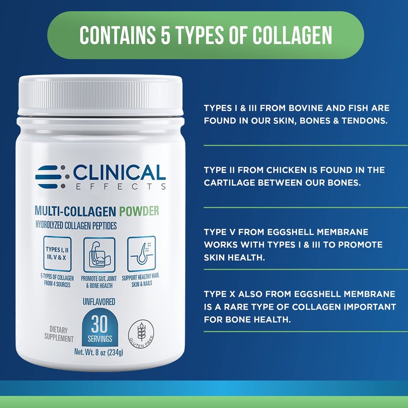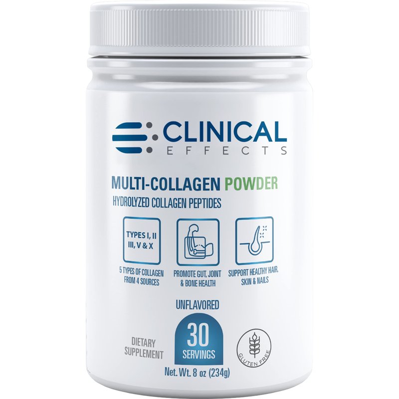 Clinical Effects Multi-Collagen Powder - Collagen Dietary Supplement - 8oz - 30 Servings - 5 Types of Quality-Sourced Multi-Collagen to Support Joint, Bone, Skin and Nail Health - Fast Absorption
