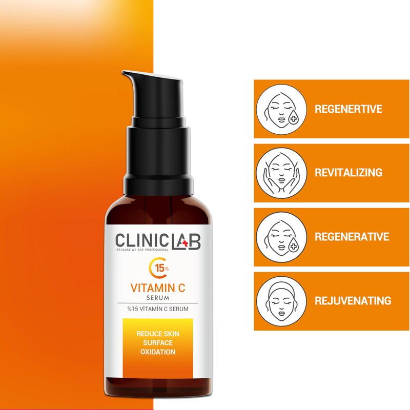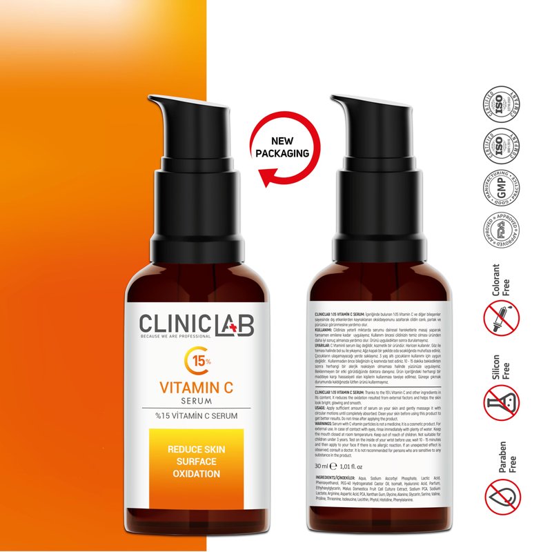 ClinicLab Vitamin C Serum is a special formula designed for all skin types. Enriched with 15% Vitamin C and other ingredients, this serum helps a radiant, luminous, and smooth complexion. This powerful formula enhances the skin's natural glow. To use, gently dispense a pea-sized amount of serum onto your fingertips. Using circular motions, massage the serum into your face and neck until fully absorbed.