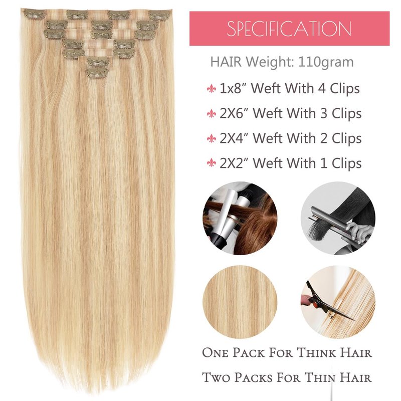 - *【Easy and Fast to Wear】You Will Can Create a Gorgeous Style Within in a Few Minutes, Easiest and Quickest Way to Add Your Hair Length and Volume, Can Do it by Yourself. One pack is 7 Pieces Attached With 16clips, 110gram, 7 Pieces Combination Meet Your Different Requirements.