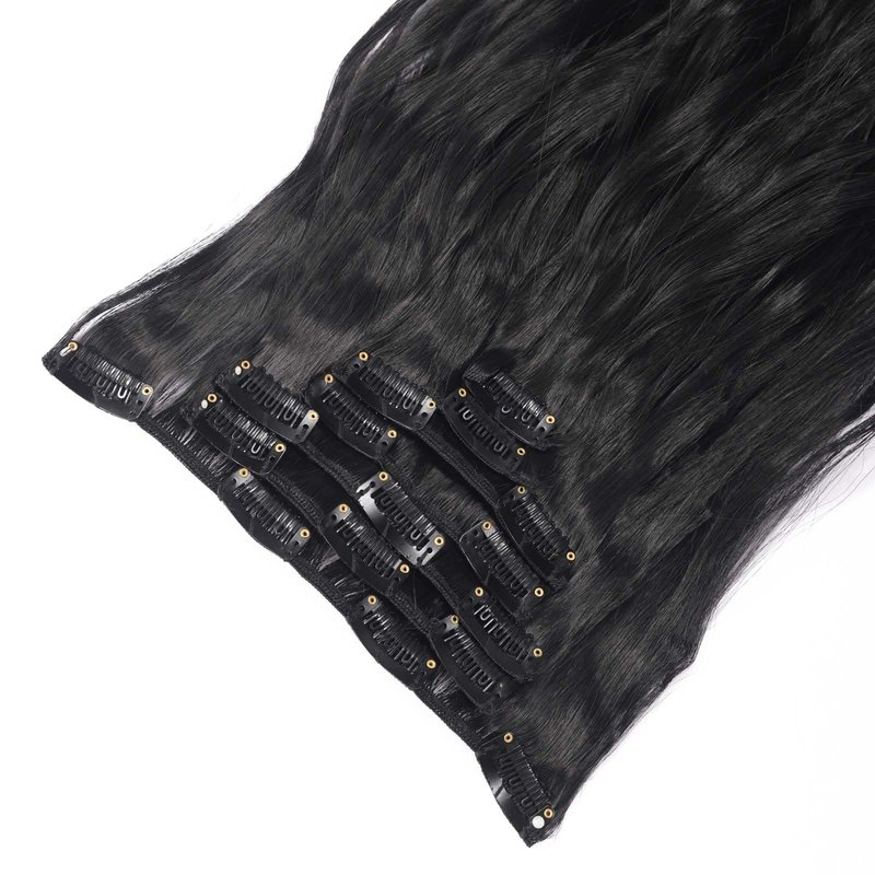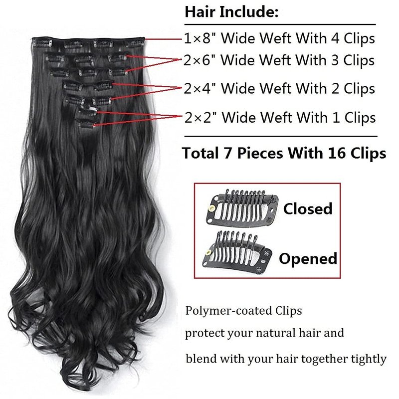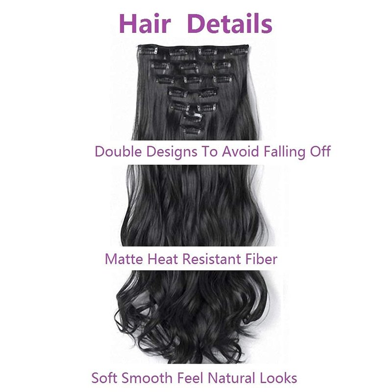 Synthetic Clip in Hair Extensions made of high quality Heat Resistant synthetic fibers,soft&smooth feel, matte shiny,easy to comb and not easy to knot, suitable for women and girls with less hair, Wear it to make your hair look more natural.