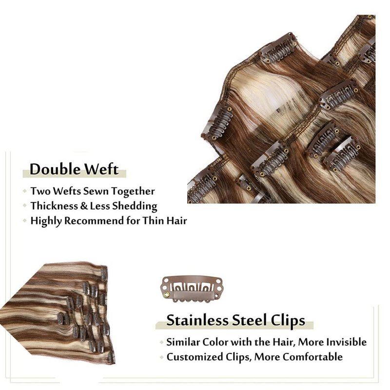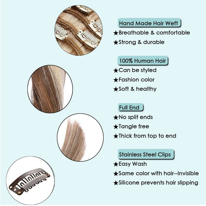 - 【High Quality Clip in Hair Extensions】-- 9A grade, remy clip in extensions human hair , salon quality, soft like your own natural hair.