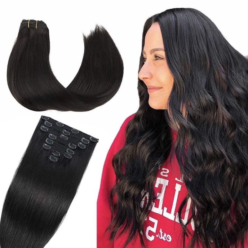 Hair Color: Natural Black Clip in Human Hair, Close to 1B Color