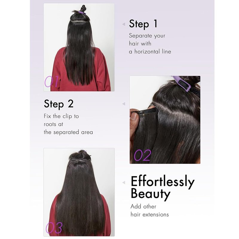 - --Cleaning and Care: Our clip in hair extensions come with strong clips and are easy to clean. Use a little mild shampoo and conditioner and wash with warm water. We recommend air drying instead of drying them with heat.