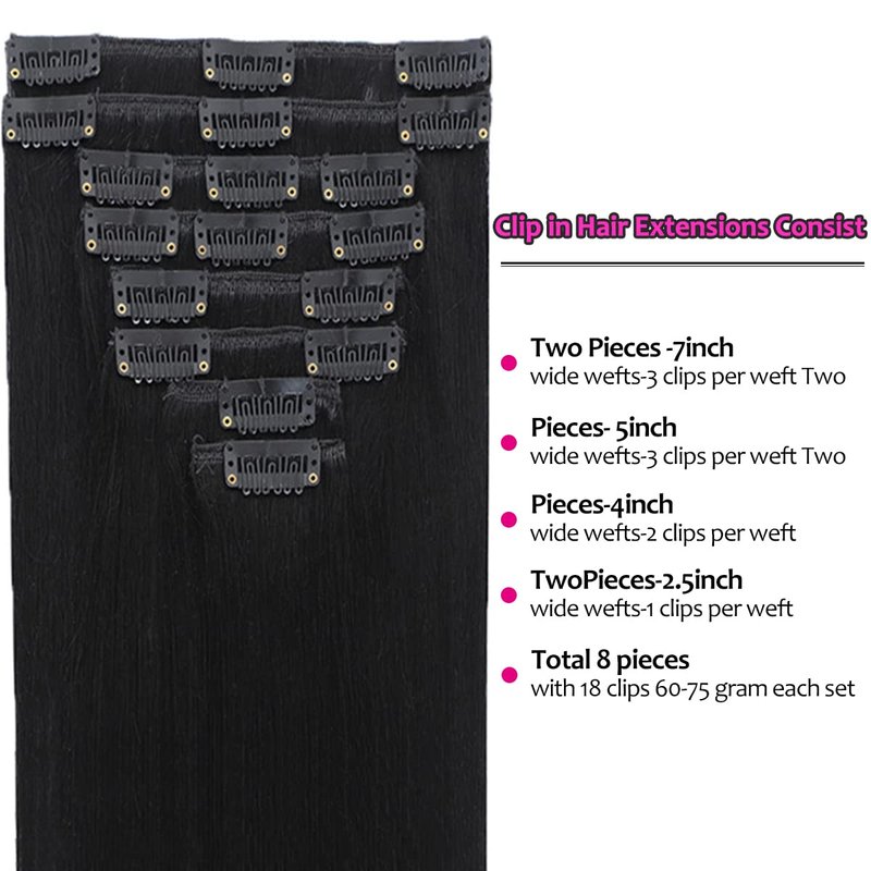 Clip in Hair Extensions Real Human Hair 100% Brazilian Virgin Human Hair 8pcs Per Set with 18Clips Double Weft Clip in Human Hair Extensions (20 Inch, #1 Jet Black Hair Extensions)