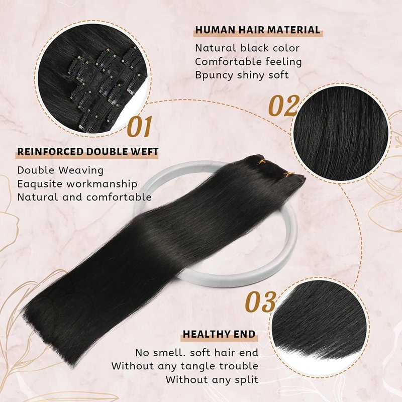 - 【Human hair clip in extensions Details】: 70g/ 7pieces / 16 clips per set. The length for straight human hair clip ins extensions is available from 12 inches to 22 inches. According to your own hair volume, usually 2 packs can fill your full head, increasing length and volume. If you have thick hair, we recommend purchasing more than 2 packs to achieve a perfect result.