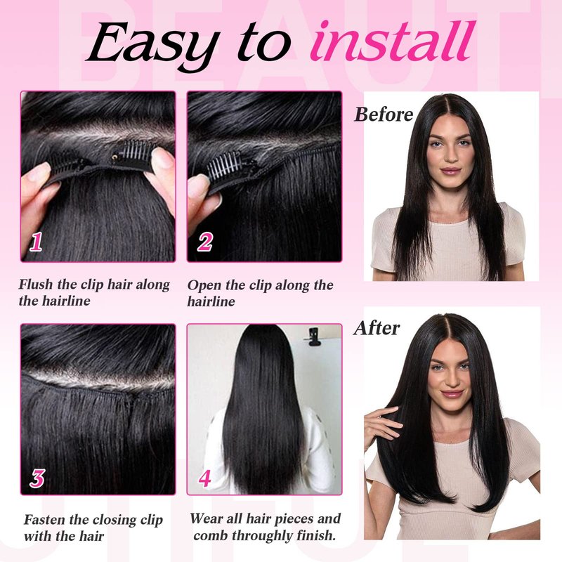 • Healthy & Fast to Wear Alone: clip in hair extensions is used Double Weft, Different From The Traditional Hair Extension Straight Hair Clip, There Is No Tape, No Glue, No Damage to The Scalp and Hair, Hand Sewed three times to the weft which is more stable, flexible