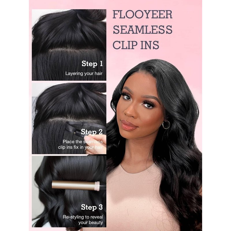 - Clip in Hair Extensions Specification: Flooyeer seamless clip ins are available in 110g, 130g, 150g options with various styles including silky straight, kinky straight, yaki straight, body waves, kinky curly, and afro kinky curly 4c. Choose your preferred style and size.