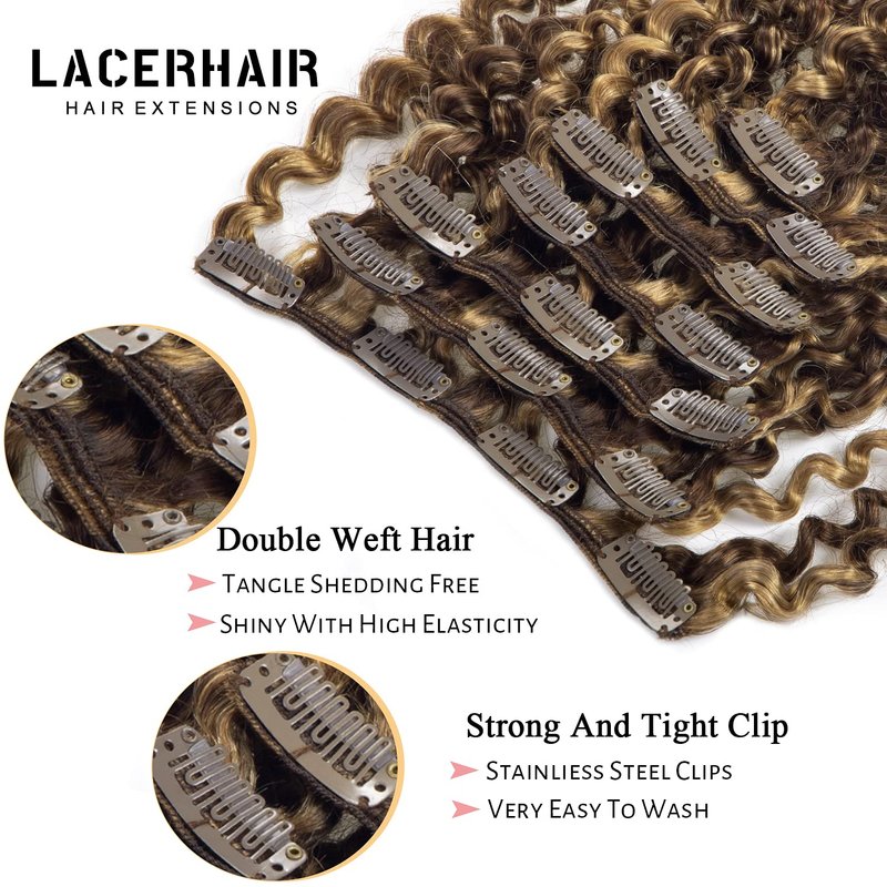 - ♥【Lightweight】— The Lacerhair Curly Clip ins Extension weighs about 120g. It will be a little thin if the hair is too long. Usually you need 1 pack to cover your hair. If you want a full hairstyle, we recommend you buy 2 packs or more.