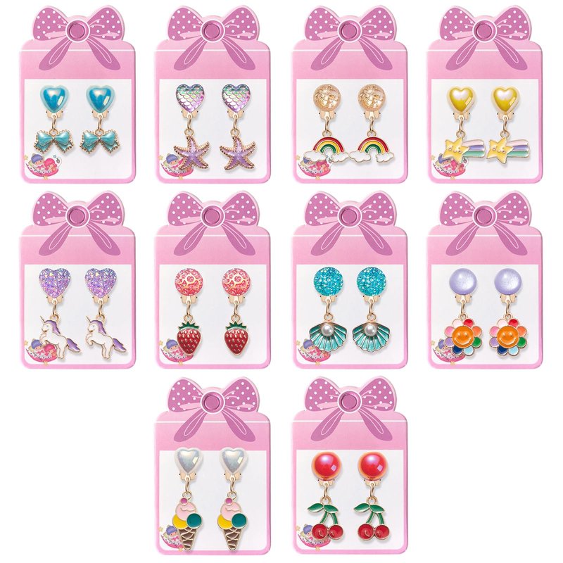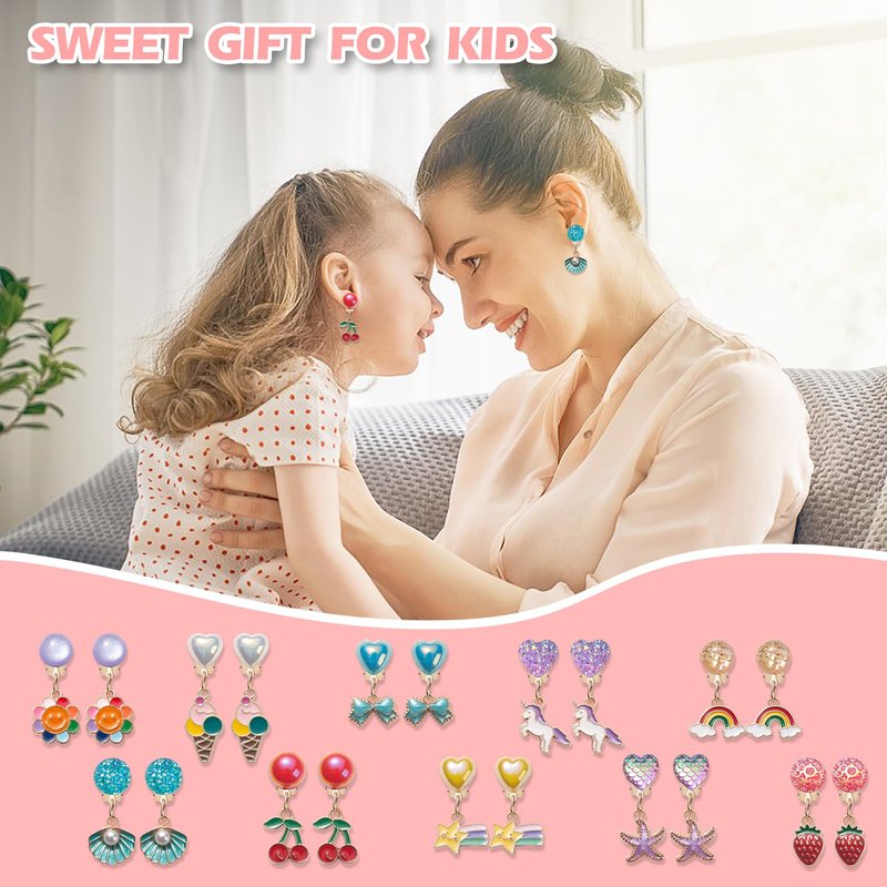 - Kids Clip on Earrings: Exquisite girls clip earrings with child-friendly designs, such as butterfly, cat, mermaid, rainbow, lollipop, flower, pearl etc, perfect for any outfit, children will like it.