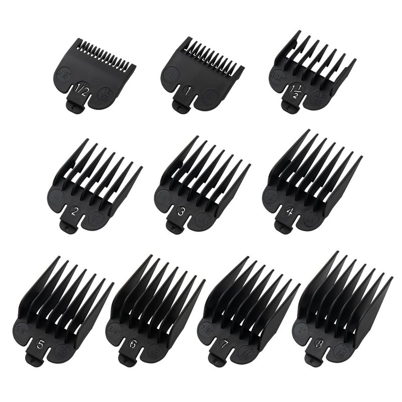 Clipper Guards Set Fits for Most Wahl Clippers and Babyliss FX870, Clipper Guides Replacement - 1/16" to 1", 10 Piece Set, Black Color