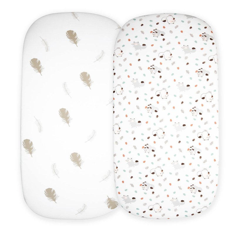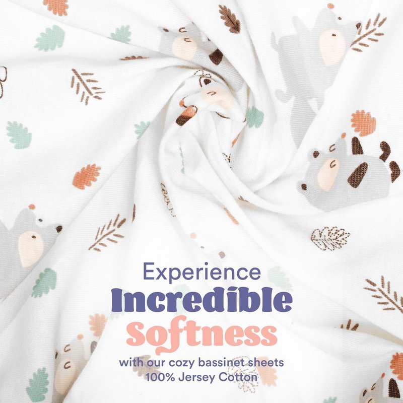 Cloud Baby Bassinet Sheet 32"x16" (2 Pack) - 100% Organic Jersey Cotton, Breathable and Soft for Baby Boy Girl Newborn Infant Unisex (Woodland Animals and Leaves)