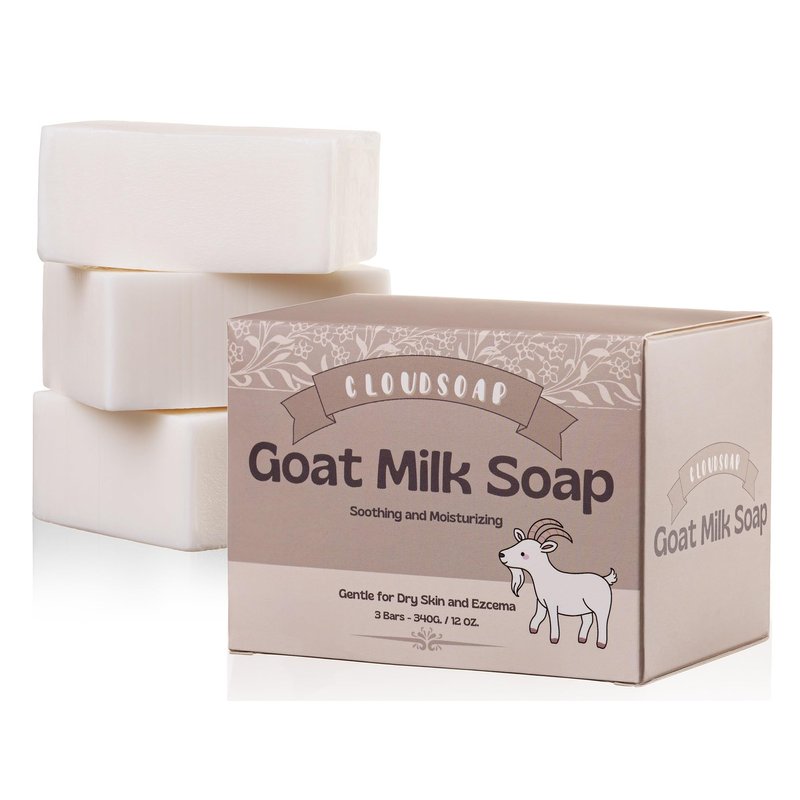 Cloudsoap New Goat Milk Soap Bar - Moisturizing for Dry, Itchy, Eczema, and Sensitive Skin - Gentle Cleansing for Kids, Babies, Women, and Men (3 Pack - 4 oz Each)