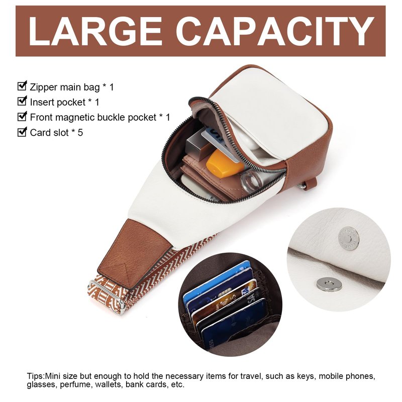 - ► Perfect Size - This lightweight and compact women's sling bag has a length (L) of 6 inches, a width (W) of 3.2 inches, and a height (H) of 10.32 inches. The adjustable shoulder strap length is 25.59 inches to 48.03 inches, which is small and lightweight to carry.