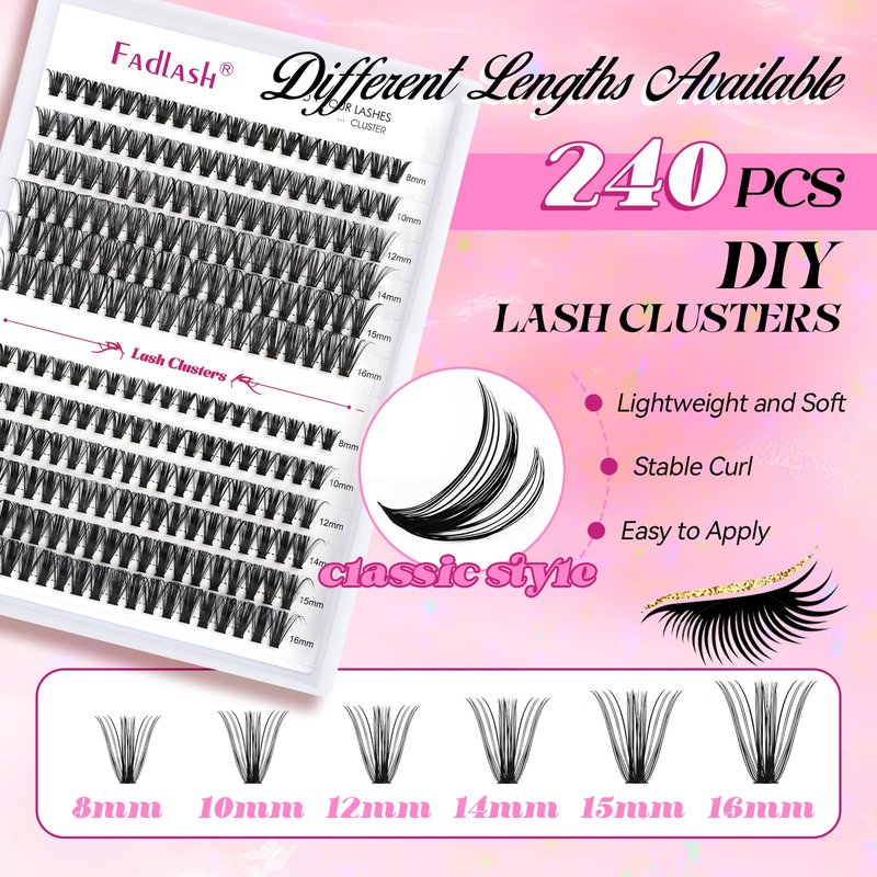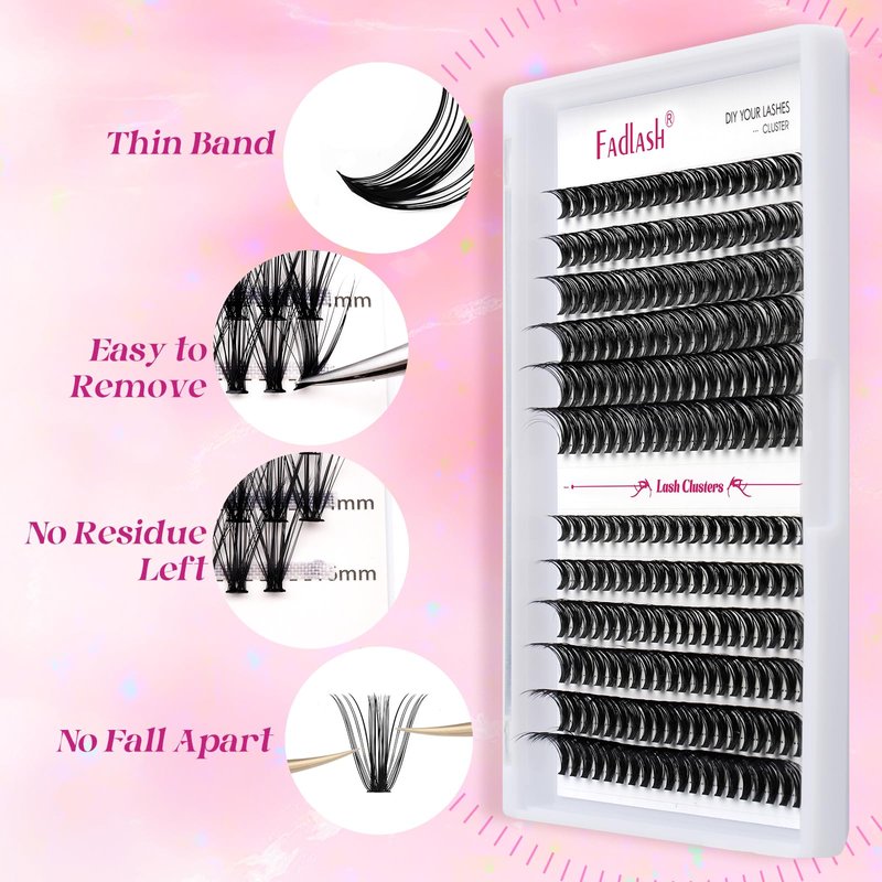 DIY individual clusters at home: FADLASH lash clusters are easy to apply. Easy to put lashes on, gorgeous results, and eyelash clusters are not easily fall apart. Cluters take less time to complete each eye. Now save so much money and time.