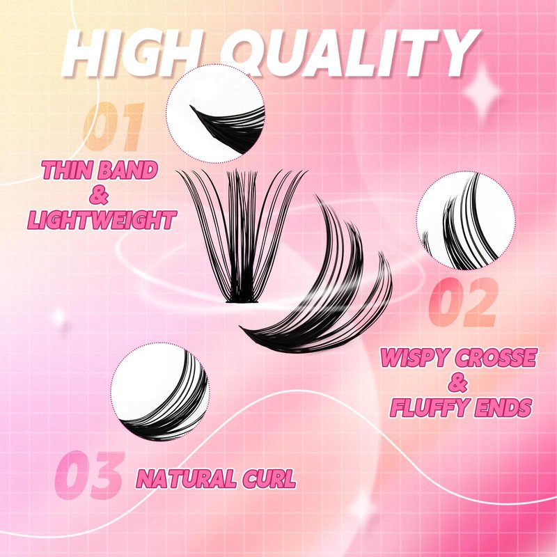 - Great Quality Lash Extensions: These lightweight and durable eyelash exensions keep a stable curl all day. The new design lash clusters will work great during your lash extension.