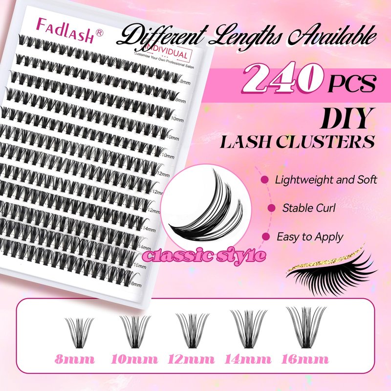 DIY individual clusters at home: FADLASH lash clusters are easy to apply. Easy to put lashes on, gorgeous results, and eyelash clusters are not easily fall apart. Cluters take less time to complete each eye. Now save so much money and time.