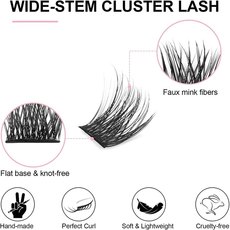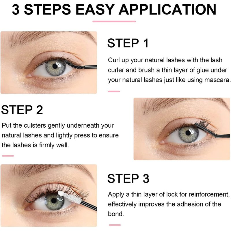 - 【High-quality eyelashes】: Cluster eyelash are made of premium black PBT material, soft to touch, comfortable to wear, silky and glossy, does not harm your skin and your eyes. Professional eyelashes, easy to use, can be DIY at home, the same price can improve the number of use.