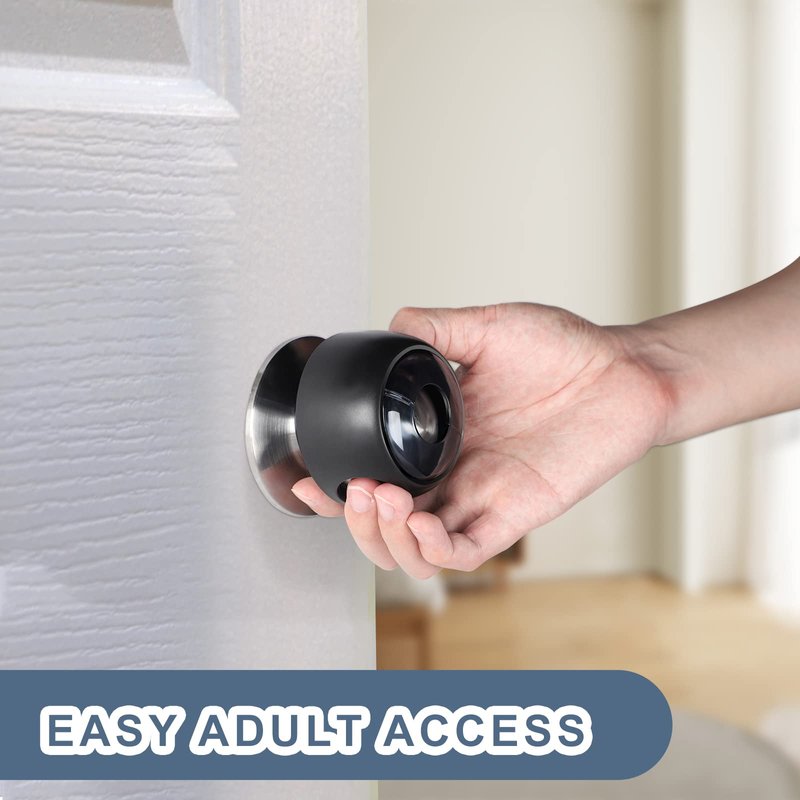 - 【DESIGN BLENDS IN WITH HOME DECOR】Our childproof door knob safety cover features a subdued, unobtrusive design that blends into your room design. Install them in kitchens, bedrooms, baths, etc.