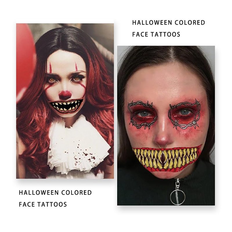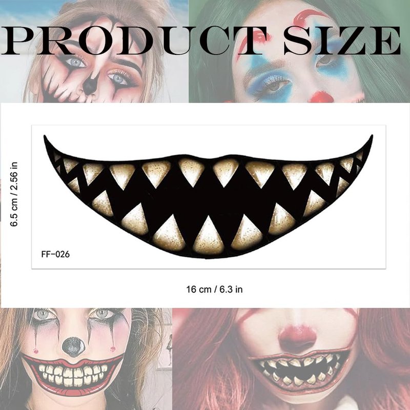 - 【Package Include】10 pieces clown horror mouth temporary tattoos in one package. The size of each tattoo is about 2.6 x 6.3 inch. Sufficient quantity and various patterns make you can share the tattoos with your friends and family.