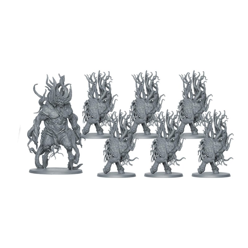 - UNLEASH THE DARK YOUNG: Battle against the relentless onslaught of Dark Young, the monstrous progeny of the Black Goat, as they gain terrifying buffs from Mythos cards.