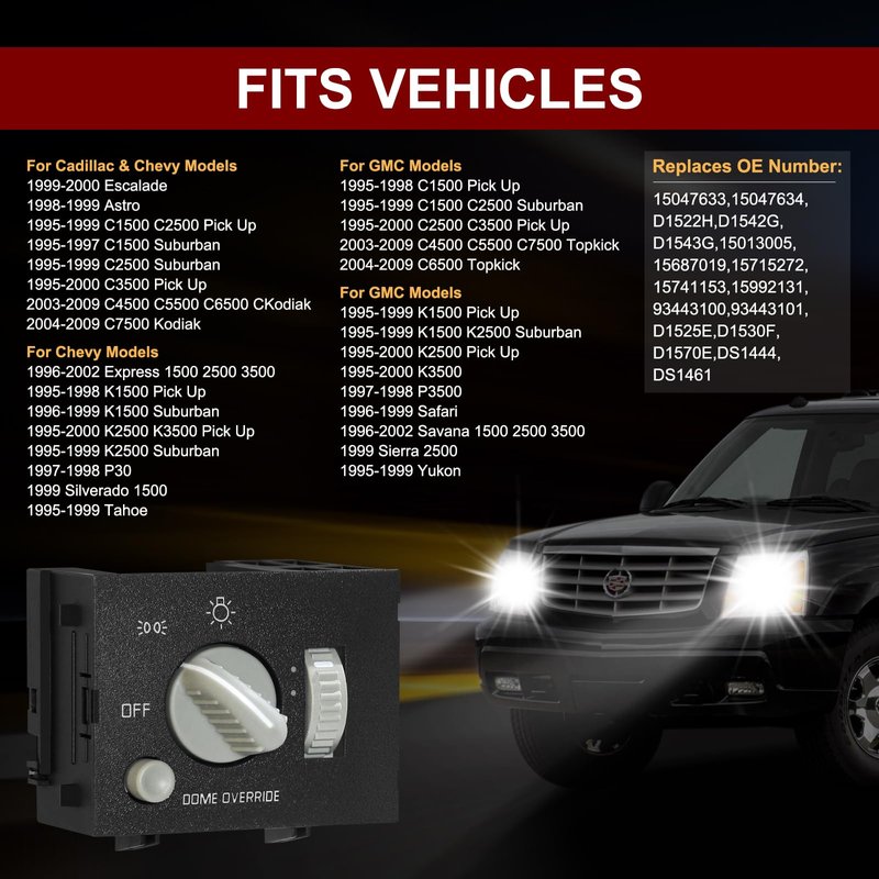 CMRDQD 93443101 Headlight Switch Headlamp Dimmer Switch for 1995-2009 Cadillac & Chevy GMC-C1500 C2500 C3500 C4500 C5500 C6500 C7500 K1500 K2500 K3500, Express 1500 2500 3500, D1523H, DS876