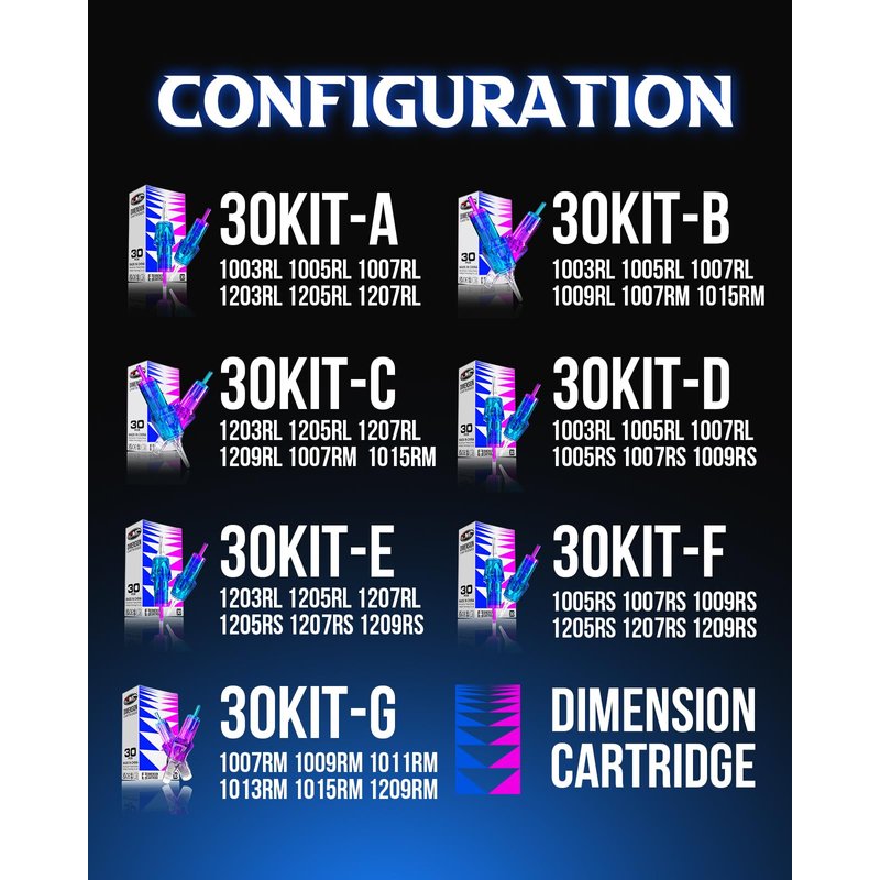 CNC Tattoo Cartridge Needles 30pcs Assorted Needle Cartridges Round Liner #10 Bugpin #12 Standard 3RL 5RL 7RL Mixed for Tattooing Supplies EN04C-30KIT-A