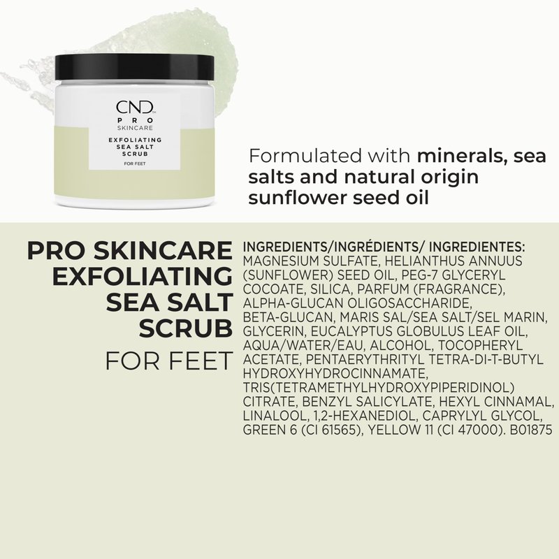 CND Pro Skincare Exfoliating Sea Salt Scrub for Feet, Minerals, Salts, Natural Sunflower Seed Oil Formula, 18 Fl Oz