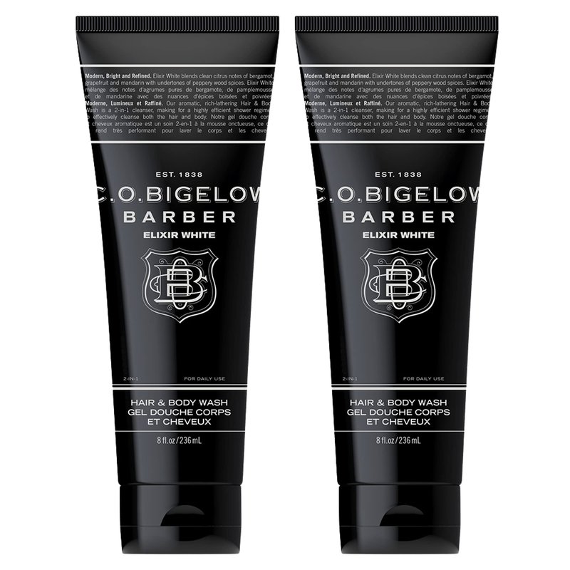 C.O. Bigelow Men's Hair and Body Wash, Elixir White, No. 1607, 8 fl oz, Mens Body Wash & Shampoo, Citrus & Bergamot Moisturizing Mens Shampoo & Body Cleanser, Pack of 2