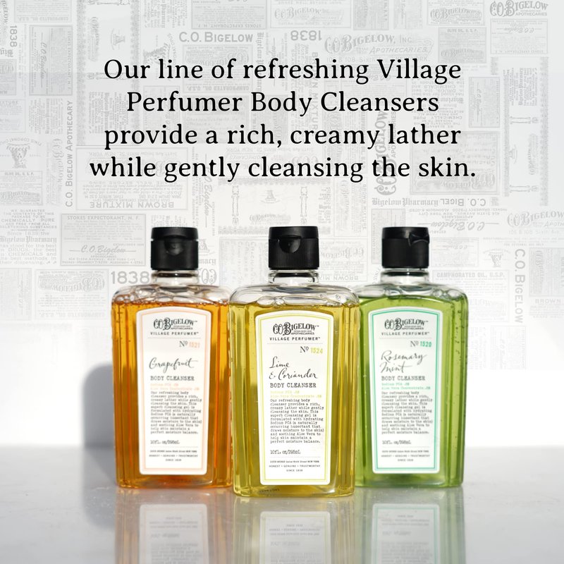 C.O. Bigelow Rosemary Mint Body Cleanser, Village Perfumer Moisturizing Body Wash for Men and Women with Aloe Vera, Sodium PCA, and Glycerin, 10 fl oz