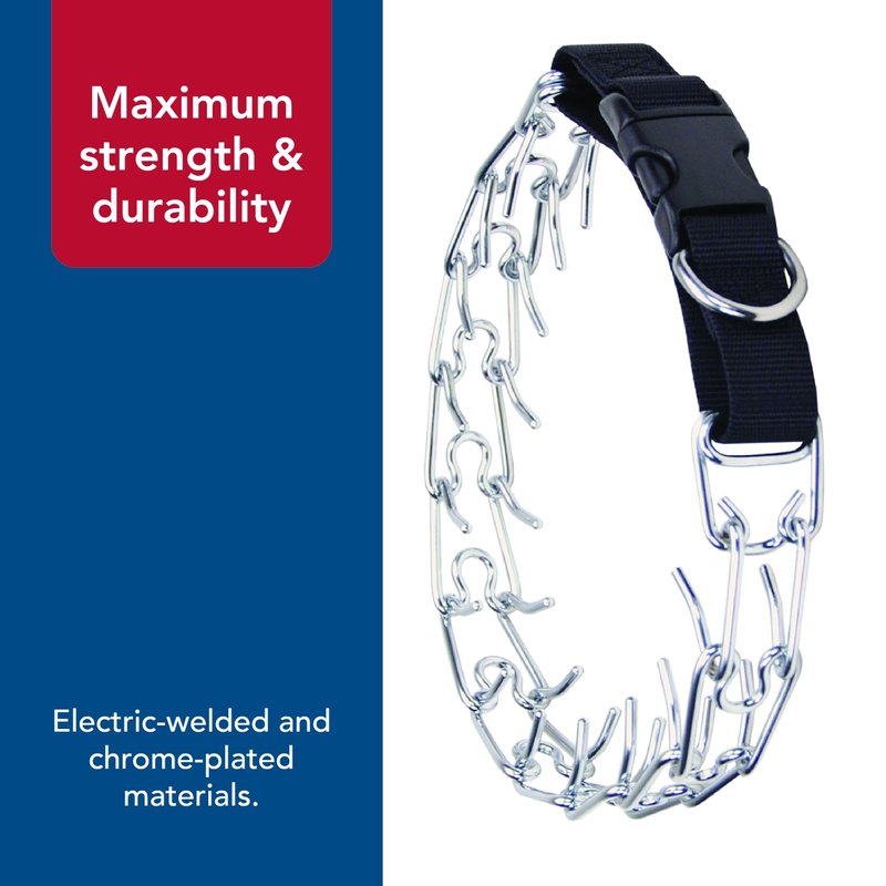 - High-Quality Metal Dog Collar: The Titan Easy-On Dog Prong Training Collar with Buckle is made of electric-welded, chrome-plated steel for maximum strength and durability
