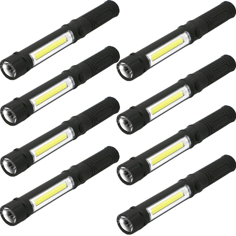 COB LED Work Flashlight with Magnetic Base and Clip Multi-Function Pocket Pen Light Inspection Work Light, 8 Pack
