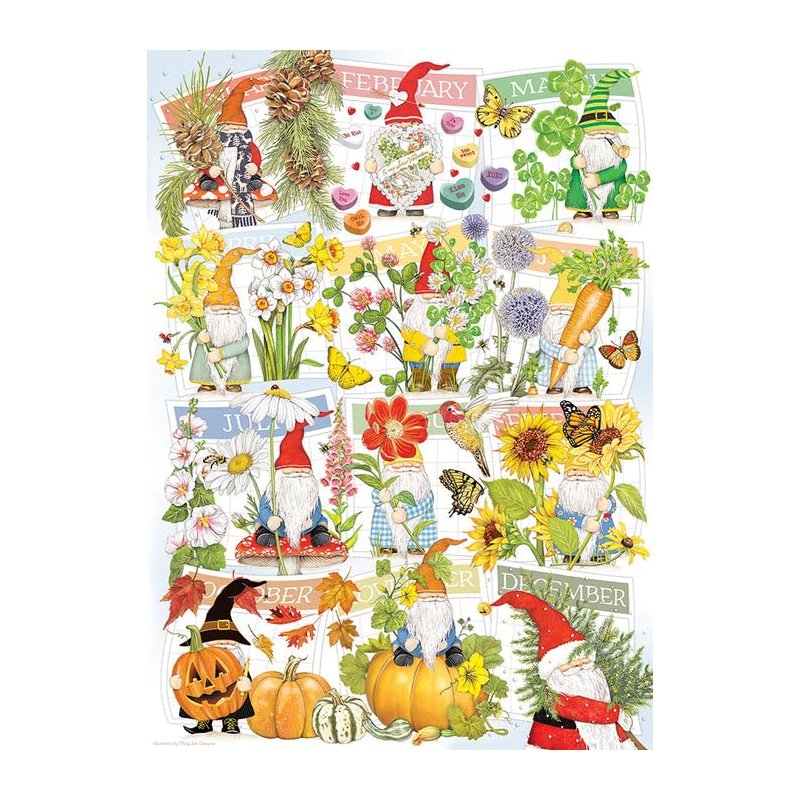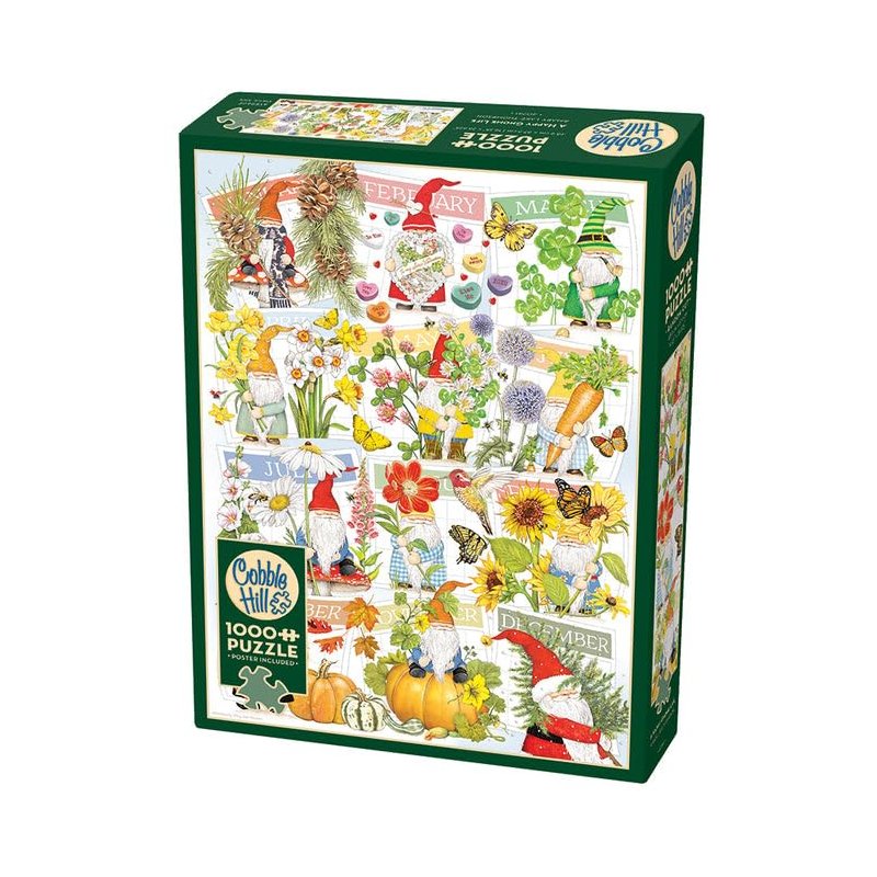 Cobble Hill 1000 Piece Puzzle - A Happy Gnome Life - Sample Poster Included