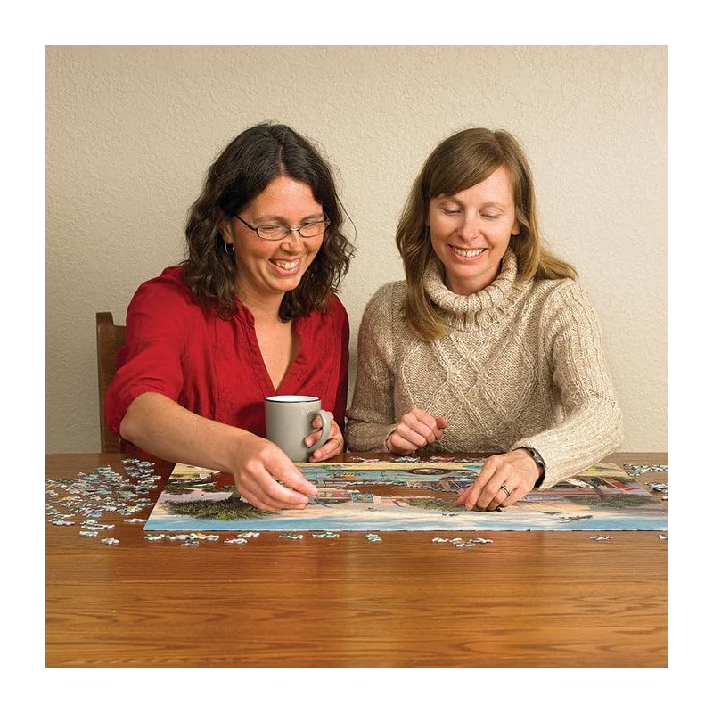 Cobble Hill was founded in 2005 with a desire to bring quality puzzles with a loving, whimsical, nostalgic feel to jigsaw puzzle enthusiasts around the world! Our finely crafted jigsaw puzzles have been described as lively, endearing, sweet, and durable. In an ever-growing technological market, it has become increasingly more important to find ways to bring families and friends together in a social atmosphere that lends to good conversations and quality time. We made the choice to print our puzzles in the United States, rather than acting on temptation for cheaper production costs in China. The choice to manufacture in the United States keeps our puzzles from traveling across the sea, which would add to air, water, and oil pollution. You can feel good about buying Cobble Hill puzzles knowing that not only are we quite eco-friendly, we bring you a solid quality jigsaw puzzle, and we want to make sure our footprint on the earth is minimal.