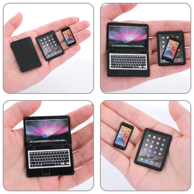 - 【Package includes】:Miniature dollhouse accessories includes:1Pcs Mini Tablet,1Pcs Mini Cell Phone,1Pcs Miniatures Metal Laptop (Mini laptop can stand open).