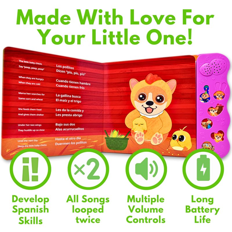 - ❤️ MADE WITH LOVE FOR YOUR BABY. Created by a mom in Brooklyn, NY, these musical toys are the perfect baby books in Spanish. Educational books and learning toys that help kids learn Spanish through music. A great gift for baby showers, moms, dads and birthdays. Los mejores libros de musica en español, juegos musicales para bebes, libros para niños, cuentos infantiles en español and libro en español para niños. Los juguetes perfectos y canciones para niños para los niños. Juegos para niños.