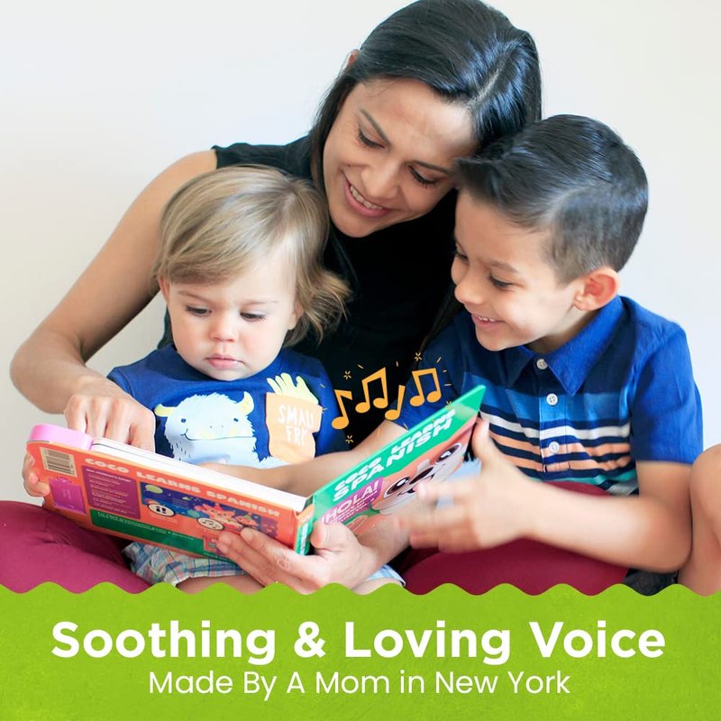 - ❤️ SOOTHING & NATURAL VOICE. Unlike the majority of sound books out there, Coco Learns Spanish features a real mom singing in a loving and calming voice. Our high quality audio is easy to understand and non-electronic sounding. At the press of a button, each children’s song is sung twice in Spanish with music. The perfect Spanish games for kids and Spanish Books for babies, toddlers & children. The best first Spanish word book, bilingual Spanish and English children's books and Spanish toys.