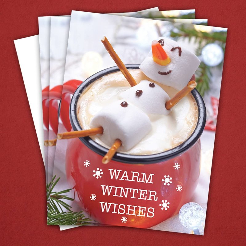 - Perfect Gift: These cocoa snowman cards are perfect to send friends and family warm winter wishes for the holidays. The inside verse, "Kick back and have a relaxing holiday," leaves plenty of room to write your own personal greetings as well.