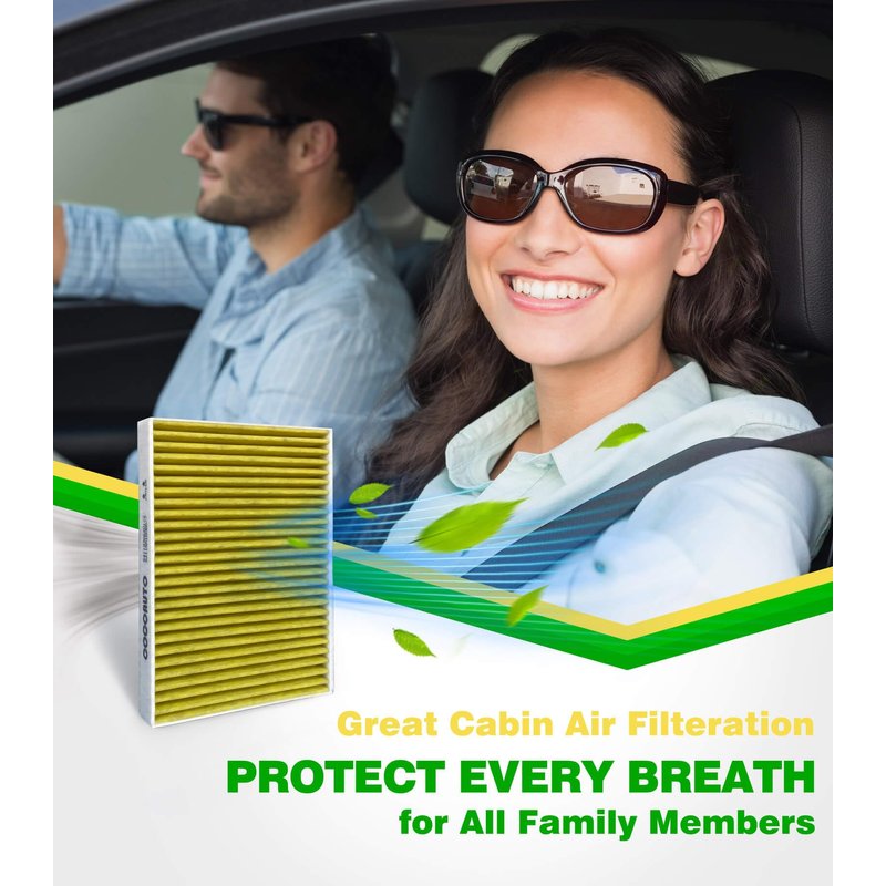 - [OEM QUALITY] COCOAUTO cabin air filter uses 4 layer Filtration Technology,enriched with coconut shell activated carbon,effectively filters 99% of dust, pollen, peculiar odors, and other airborne particles.
