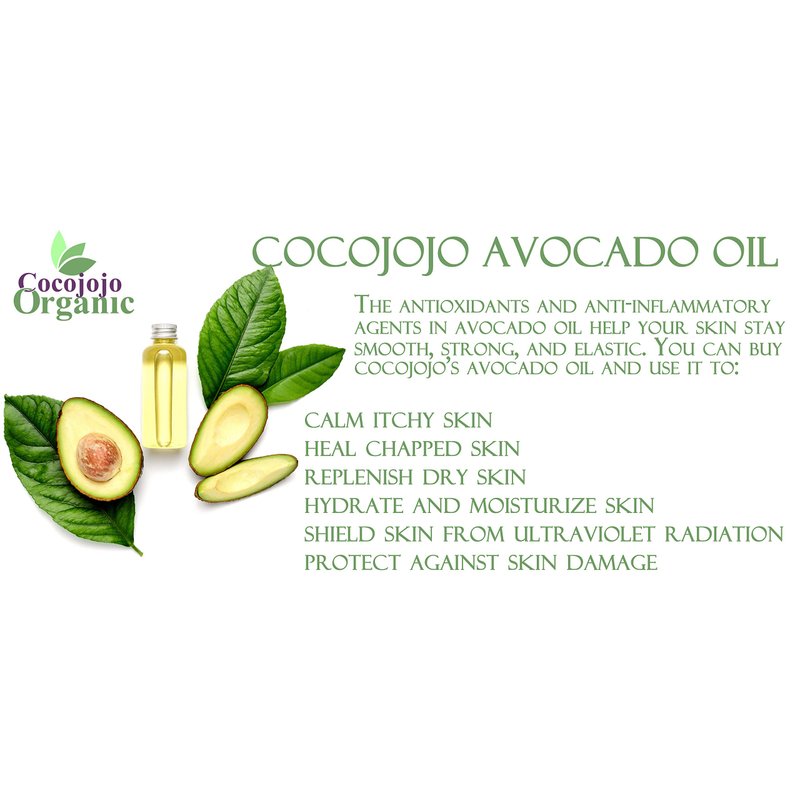 Avocado oil protects the skin from harmful uva and uvb rays. Avocado oil soften and smooths the skin. Adds shine to dull, dry hair. Avocado oil is an excellent beard oil for men. cocojojo avocado oil is 100% pure natural cold pressed cruelty free, parabens free gmo free vegan friendly and never tested on animals. 32 oz containers are factory sealed.