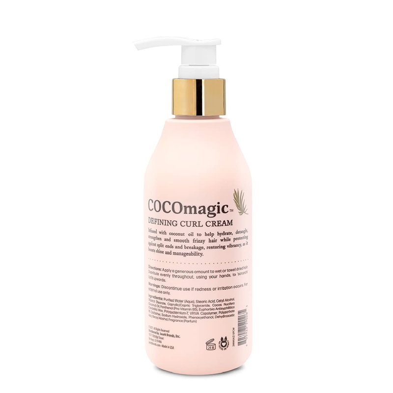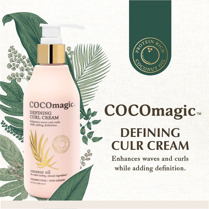 - COCOMAGIC DEFINING CURL CREAM: Infused with coconut oil to help hydrate, detangle, strengthen and smooth frizzy hair while protecting against split ends and breakage, restoring vibrancy, as it boosts shine and manageability. 8 oz.