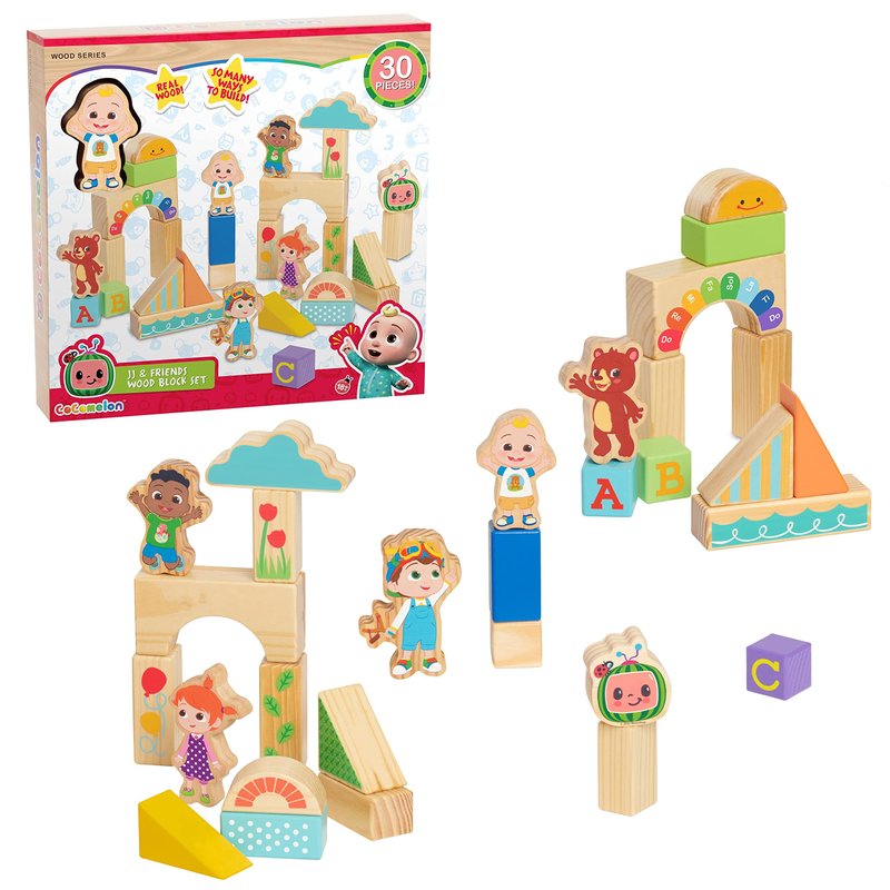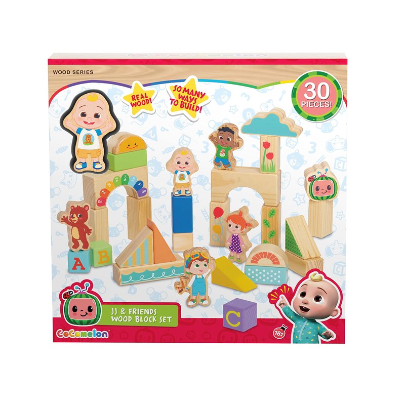 - Learn and Play the CoComelon Way: The CoComelon JJ & Friends Wood Block Set includes different shapes, patterns, and CoComelon characters. Kids can build a playground for JJ and his friends!