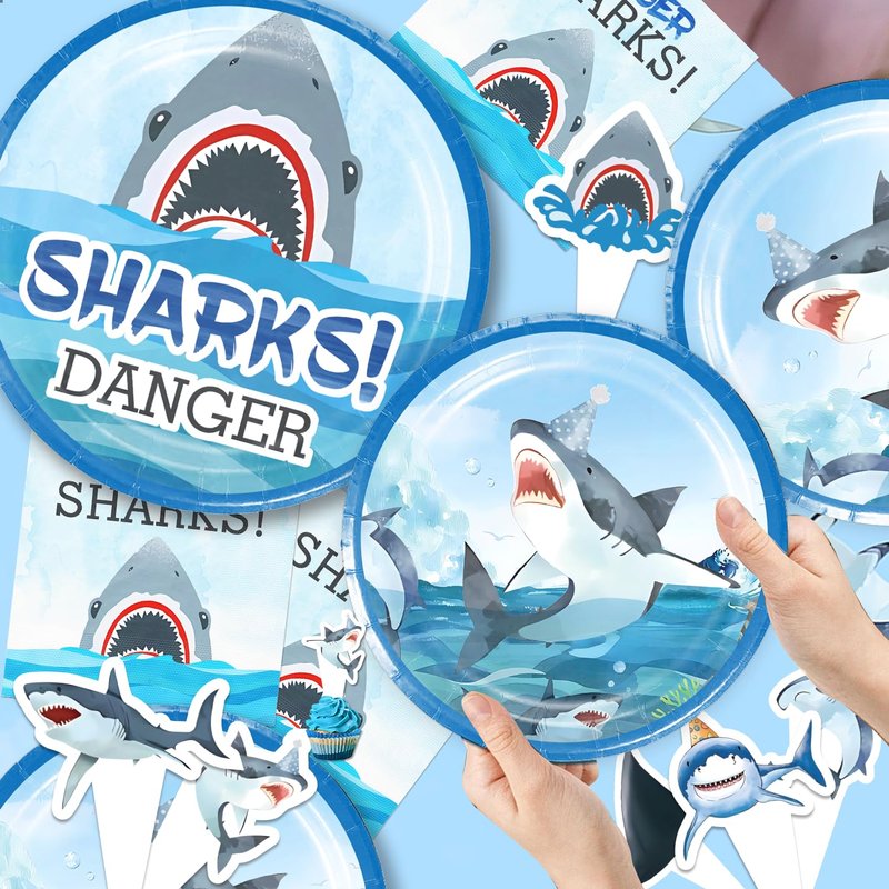 - Materials: Shark party decorations include shark birthday banner, shark plates and napkins are all made of safe and quality materials, thick and durable, suitable for indoor and outdoor use. shark decorations for party is a great idea to make your family and friends happy,and the shark party decorations can fill your party with atmosphere