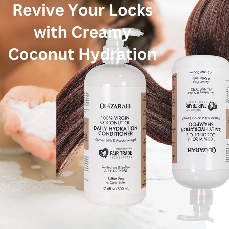Coconut Daily Hydration Shampoo, 17 fl. oz. & OlaZarah Coconut Oil Conditioner, 17 fl. oz (combination)