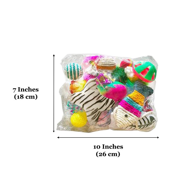 Amusing Assortment for Even the Pickiest Pets While some ferrets and cats find amusement in something as simple as a ball of paper, others are more finicky and harder to please. The CoCoo 20-piece Ferret and Cat Toys Variety Pack has toys of all shapes and sizes for your pets of all shapes and sizes. Instead of buying toy after toy trying to find one that your pet loves, purchase 1 assortment and receive 20 toys to choose from. Some toys are colorful, others release sounds, and some even have feathers or catnip. Maybe your pet will pick out his favorite, or maybe he will love them all! Helpful Hints and Fun Activities Playing with your pets on a daily basis increases the relationship between you and your cat, or ferret stabilizes nervous emotions in both of you, and releases your pet’s energy in a positive way. Toss a bouncy ball for your cat and ferret to chase. Tease him with a mouse and feather toy. Increasing your pet’s physical activity helps maintain a healthy weight and also helps young kittens develop coordination. Providing your ferret and cat with a variety of toys keeps him from getting bored and provides a timely replacement in case he gets too rough with one. Never force your pet to play with toys and remove any toys that have been damaged or excessively worn out. The toys are designed for cats or ferrets and not children. Enjoy the awesome assortment of toys together and have fun bonding with your pet cat! CoCoo 20-piece Cat Toy Variety Pack Includes: 1 rainbow bouncy ball 1 mylar crinkle ball 1 soft koosh ball 2 fuzzy balls 1 mouse in a cage toy 1 catnip cushion 1 catnip fish toy 1 caged jingle bell ball 1 medium dumbbell toy 1 small dumbbell toy 1 faux mouse with feathers 1 wrapped rope mouse with long tail 1 wrapped rope mouse with feathers 1 wrapped rope fish toy 1 high bounce bouncy ball 1 wrapped rope ball 2 wrapped rope balls with feathers 1 mouse and feather on a ball toy