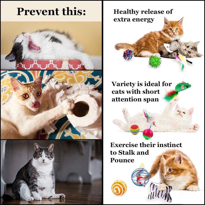 - Protect Your Floors And Furniture --- While you are away, your cats and ferrets will play. They may also become bored or stressed out enough to take it out on your sofa, rugs, and chairs. To protect your furniture and keep your pets occupied, the CoCoo 20-pack of Assorted Ferret and Cat Toys is the ideal solution. There are so many toys to play with, your pets won’t even notice that you are gone.