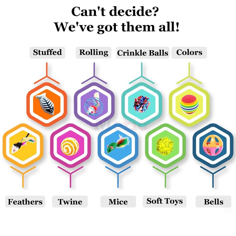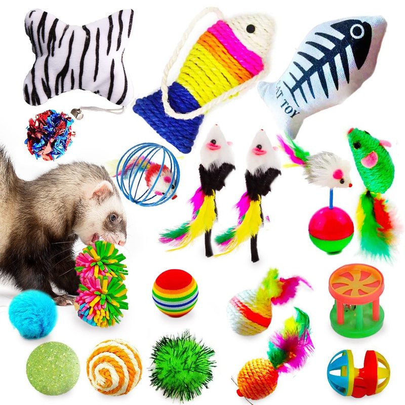 - Purr-Fect Gift For A Cat Lover --- The incredible selection of 20 different toys is the ideal holiday or birthday gift for a cat and ferret lover. Even the most difficult to please pets are sure to find an enjoyable toy in this amazing collection of assorted, colorful toys.
