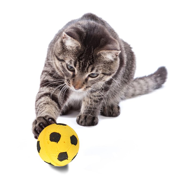 - The Key To Happy Cats Is Them Being Physically & Mentally Fit --- If surrounded with interactive stuff, you can avoid your cat from becoming a “couch potato puss”. Therefore with these set of playballs, let her remain active and maintain an ideal weight. Behavior problems that can arise from boredom can also be avoided as she will be occupied running after these soccer balls around.